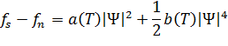 En su trabajo sobre la superconductividad, decidieron que el parámetro de orden tenía que estar relacionado con una función de ondas «efectiva» Ψ (letra griega psi) de los «electrones superconductores». Como toda función de ondas, Ψ es una función compleja, y el cuadrado de su módulo |Ψ|2 tiene que ver con una densidad. En este caso, se trata de la densidad n, de los electrones superconductores. El parámetro depende de la temperatura T, y se anula cuando la temperatura iguala o supera su valor crítico Tc, lo que refleja que no hay electrones superconductores por encima de la temperatura crítica. El paso siguiente fue escribir la energía en función del parámetro de orden. De manera precisa, conviene utilizar la densidad de energía libre (es decir, su valor por unidad de volumen) que hace intervenir explícitamente la temperatura De acuerdo con la teoría de Landau para las transiciones de fase, supusieron que la diferencia de energías entre las fases superconductora y normal varía suavemente con el parámetro de orden (figura 2 siguiente). Como este es complejo y la energía libre es real, ha de depender solo del módulo del parámetro de orden, y es más adecuado escribirla en función del módulo al cuadrado, que se identifica con la densidad de electrones superconductores, de la siguiente manera: