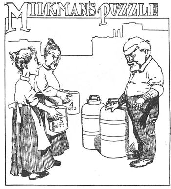 La práctica habitual de un lechero concienzudo consistía en llenar sus dos tarros de dieciséis galones con leche pura antes de servir a los clientes de cuatro calles diferentes, en cada una de las cuales repartía la misma cantidad de cuartos. (Un galón es igual a cuatro cuartos).