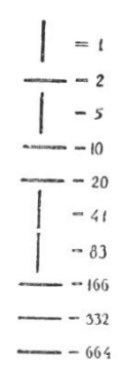 En otro lugar del mismo tomo del "Código de las Leyes", nos volvemos a encontrar con una referencia al empleo obligatorio de las notaciones numéricas nacionales. Se dan signos especiales para los millares de rublos, en forma de una estrella de seis puntas con una cruz en su centro, y para las centenas, en forma de una rueda con ocho rayos. Pero se establece aquí una notación para rublos y decenas de kopeks, diferente a la señalada en la ley anterior. Veamos el texto de la ley acerca de los así llamados "signos tributarios".Que en todo recibo entregado al Representante de la Alta Estirpe, además de la redacción con palabras, se escriban con signos especiales, los rublos y kopeks aportados, de tal manera que al realizar un simple cálculo de todos los números, pueda ser aseverada la veracidad de las declaraciones[1]. Los signos empleados en el recibo significan: