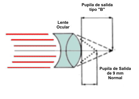 Por supuesto, mientras más grande sea la pupila de salida, más luz es transmitida a los ojos y más brillante resultará la imagen. Sin embrago, la pupila del observador tiene un límite; nunca una pupila de salida mayor que la pupila del observador hará la imagen más brillante y tampoco su tamaño es garantía del buen funcionamiento del aparato.