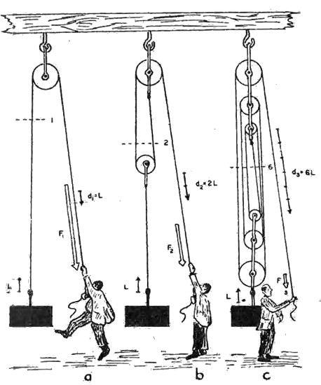 Arquímedes, que era pariente y amigo del rey Hierón de Siracusa, escribióle que con una potencia dada se puede mover un peso dado, y envalentonado, como suele decirse, por la fuerza de su demostración, declaró que si hubiera otro mundo y pudiera ir a él, podría mover éste. Hierón quedó asombrado y le pidió que pusiera en práctica su proposición y le mostrara algún gran peso movido por una ligera fuerza. Arquímedes, entonces, escogió un mercante de tres palos de la flota real que fue arrastrado a tierra gracias al esfuerzo de muchos hombres y después.de poner a bordo a muchos pasajeros y a la carga acostumbrada, se sentó a cierta distancia y sin gran esfuerzo, sino poniendo tranquilamente en movimiento, con su mano un sistema de poleas compuestas, lo arrastró hacia él tan suavemente como si estuviera deslizándose en el agua.