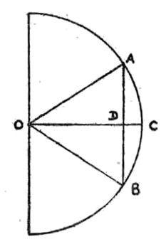 El problema era encontrar la relación de la cuerda ADB correspondiente al arco ACB del círculo de radio unidad (Figura 7).