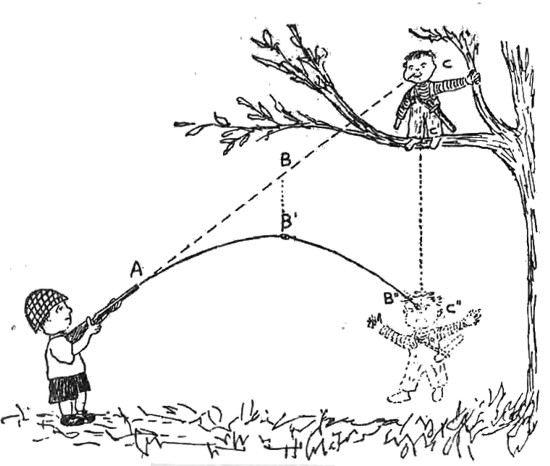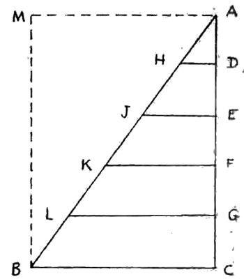 Si miramos a lo largo de la perpendicular as, el rayo visual no se curvará, sino que caerá sobre y opuesto a a y en la misma línea recta que as. Sin embargo, en todas las demás posiciones, cuando el arco ae aumenta, también aumenta el arco gh pero el grado de curvatura del rayo será progresivamente mayor.