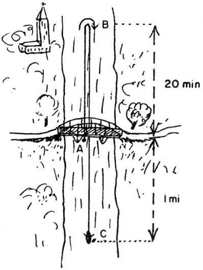 Tomemos ahora un arco medido, por ejemplo ae, desde el punto a en uno de los dos cuadrantes del disco que están sobre el nivel del agua. Coloquemos en e una pequeña marca de color. Con un ojo miremos a las marcas en e y en s, ambas aparecerán en una línea recta a partir del ojo. Al mismo tiempo, movamos una pequeña y delgada regla a lo largo del arco gd del cuadrante opuesto, que está debajo del agua, hasta que la extremidad de la regla aparezca en el punto de la prolongación de la línea que une e y s. Ahora, si medimos el arco entre el punto g y el punto h en el cual la regla aparece en la línea antes dicha encontraremos que este arco, gh, siempre es más pequeño que el arco ae.