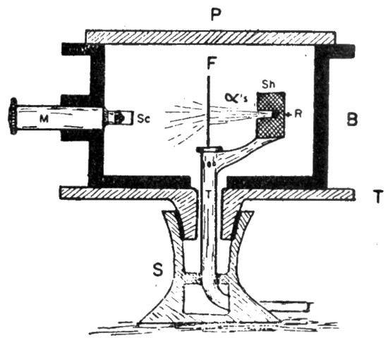Las partículas que son expulsadas por los átomos radiactivos volarán a través de la cámara ionizando el aire a lo largo de sus trayectorias. Sin embargo, como el aire no está completamente saturado de vapor de agua, no se produce ninguna condensación y los iones positivos y negativos originados por las partículas al pasar se recombinan rápidamente formando moléculas neutrales. Pero supongamos que hacemos descender rápidamente el pistón en una cierta distancia. La expansión del aire encerrado entre el pistón y el cristal del techo hará descender la temperatura del aire y producirá la condensación del vapor de agua de la misma manera que se forman las pubes como resultado de las corrientes de aire húmedo en la atmósfera terrestre. Pero, como la condensación del vapor acuoso está considerablemente facilitada por la presencia de iones producidos por las partículas cargadas que atraviesan la cámara en aquel momento, la formación de niebla tendrá lugar a lo largo de las trayectorias de las partículas y entonces largos trazos de niebla se destacarán claramente sobre el fondo negro en el haz de la luz iluminadora. Este espectáculo puede verse directamente mirando a través del cristal del techo o fotografiándolo por una cámara, Ph.