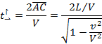 Si la diferencia de presión barométrica entre los dos lugares es, por ejemplo, de 100 mm de mercurio, significa que el peso de la columna de aire es igual al peso de una columna de mercurio de 100 mm de altura, y, por tanto, la absorción de rayos cósmicos en una capa de mercurio de 100 mm de espesor debe ser la misma que la absorción en el aire entre la cima y la base de la montaña. Esta regla funcionó exactamente en el caso de los electrones de los rayos cósmicos, pero no en el de las partículas recién descubiertas. Un experimento importante en este sentido fue realizado en 1940 por Bruno Rossi y otros en el Lago Eco (altura, 3.240 metros), cerca de la cumbre del Monte Evans, junto a Denver (altura 1.616 metros). La diferencia de presión barométrica entre los dos lugares era de 14,5 mm de mercurio, o lo que es lo mismo, 2 metros de agua. Rossi empleó dos contadores idénticos de mesones —uno en Denver y otro en la montaña, el último sumergido dos metros bajo la superficie del lago[30]. Como el agua del lago produciría en este caso la misma absorción que la capa de aire entre el lago de la montaña y las calles de Denver, se esperaba que ambos contadores dieran el mismo resultado. Sin embargo, el experimento no confirmó estas esperanzas, y el contador en Denver mostró constantemente un número mucho menor de mesones. La única explicación posible era que había otra causa distinta que la absorción atmosférica para reducir el número de mesones que llegaban al suelo. Enrico Fermi sugirió que el efecto podría ser debido a la intrínseca inestabilidad de los mesones. En efecto, si los mesones se desintegran en su viaje, la fracción que llegue al suelo dependerá del tiempo del viaje. Como los mesones que descienden hasta Denver han viajado 1.624 metros más, y como viajan prácticamente con la velocidad de la luz, el intervalo de tiempo implicado es 1,6·105/3·1010 = 5·10-6 segundos. De esta cifra y del decrecimiento observado de intensidad al nivel del suelo, puede ser calculada la media del tiempo de vida en los mesones, que resulta depender de su velocidad. Para los mesones muy rápidos, con la energía de 250 mev, el tiempo de vida fue de unos 2·10-3 segundos, mientras que para los lentos con sólo una energía de 100 mev, fue observado un tiempo de vida de sólo 5·10-4. Estas observaciones dieron la primera confirmación experimental de la dilatación einsteiniana del tiempo y los resultados experimentales se ajustaban muy bien a la fórmula