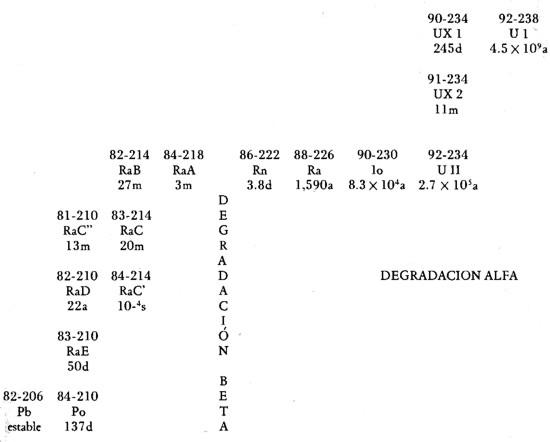 Np y Pu significan el neptunio y el plutonio, los dos elementos "transuranios" producidos en la pila atómica. Mientras el neptunio es un estadio transitorio en el proceso, el plutonio es algo realmente importante. Posee las mismas propiedades que el U235 sólo que más acentuadas. Se desintegra más fácilmente, cuando le hiere un neutrón, y su fisión va acompañada de un número mayor de neutrones secundarios. Y lo que desde luego es más importante, teniendo propiedades químicas diferentes que el uranio puede ser separado fácilmente —así dicen— del uranio restante cuando termina al proceso de combustión en la pila.Hoy, la producción de material desintegrable en los Estados Unidos se eleva a x toneladas por año, contra y toneladas por año en la Unión Soviética.