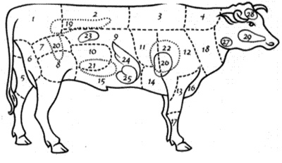 9. Asado de tira o costilla derecha | 24. Pana o hígado |