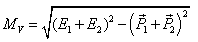 Restando del cuadrado de la energía el cuadrado del impulso, obtenemos el cuadrado de la masa de esta partículaM2 = (E1 + E2)2 - (P1 + P2)2 (1)