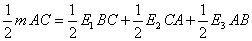 Dibujemos el triángulo equilátero ABC con una altura m (fig. 57), tomemos dentro de él un punto arbitrario O y unamos éste con las vértices A. B, C. Las distancias desde el punto O hasta los lados del triángulo las designamos E1, E2, E3. El área del triángulo ABC es igual a la suma de las áreas de los triángulos OAB, OBC y OCA:
