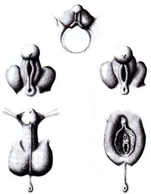 Pero los órganos masculinos no han sido los únicos en evolucionar. Los órganos de reproducción femenina también despliegan una asombrosa variedad de pautas. La antiquísima lucha de los machos por desplazarse los unos a los otros y ser los primeros en entrar, no siempre es del agrado de las hembras. Al mantener retirado el lugar en el que se produce la fecundación, y al haber desarrollado intrincadas pestañas, solapas y esfínteres, los genitales femeninos de algunas especies se han convertido en una verdadera carrera de obstáculos para el esperma. Desde luego, los sistemas reproductores han evolucionado, tanto en el hombre como en la mujer, pero como quiera que la mayor parte del sistema reproductor femenino es interno, mientras que el del hombre incluye un pene y unos testículos conspicuamente expuestos en el exterior del cuerpo, los genitales masculinos juegan un papel mayor en el pensamiento mágico y asociativo del niño.