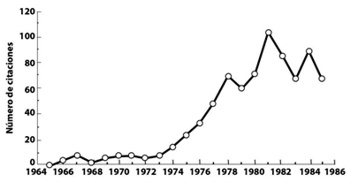 Figura 1. Citas anuales de Hamilton (1964) en el Science Citation Index