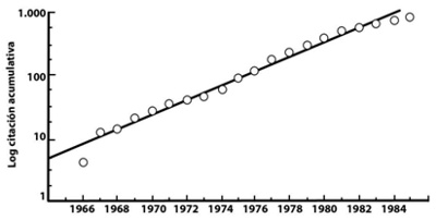Figura 2. Acumulación logarítmica de citas de Hamilton (1964)