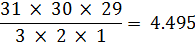 cualquiera de los treinta y un sabores puede estar encima, cualquiera de los treinta restantes puede estar en el centro y cualquiera de los veintinueve restantes debajo. Si no nos importa el orden en que están los sabores del helado, sino que sólo nos interesa saber cuántos posibles helados de tres sabores hay, dividiremos 26.970 entre 6, con los que obtendremos 4.495 helados distintos. El motivo de esta división es que hay 6 = 3 × 2 × 1 maneras distintas de ordenar los tres sabores en un helado de, por ejemplo, fresa, vainilla y chocolate:FVC, FCV, VFC, VCF, CVF y CFV.
