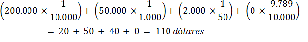 Tiene una posibilidad entre 524.288 (219) de ganar los mil millones de dólares y 524.287 entre 524.288 de perder 100. Aunque es prácticamente seguro que va a perder cualquier apuesta particular, cuando gane (cosa que según la ley de los grandes números ocurrirá una vez de cada 524.288 aproximadamente), las ganancias le resarcirán con creces de sus pérdidas anteriores. En concreto, la ganancia media o esperada en este juego es de (1/524.288) × (+ mil millones) + (524.287/524.288) × (− cien), que da aproximadamente 1.800 dólares por apuesta. Sin embargo, mucha gente opta por no jugar a este juego (que es una variante de lo que se conoce como paradoja de San Petersburgo) a pesar de que las ganancias medias sean de casi 2.000 dólares.