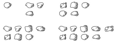 En su libro A Mathematician’s Lament [El lamento de un matemático], Paul Lockhart aboga por un enfoque educativo en el que los números son tratados de manera más concreta de lo normal: nos pide que los imaginemos como grupos de piedras. Por ejemplo, el 6 corresponde a un grupo de piedras como este: