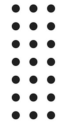 Pero se hace más intuitiva si concebimos la multiplicación visualmente. Piense en 7 × 3 como en el número de puntos en una formación rectangular con siete filas y tres columnas.