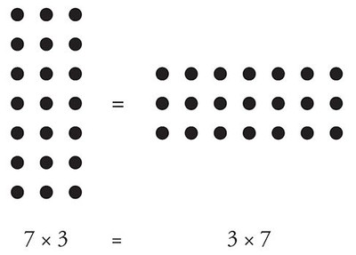 Puede ser que todo este alboroto semántico le parezca absurdo, puesto que el orden en que se multiplican los números no es importante: 7 × 3 = 3 × 7. Hasta ahí de acuerdo, pero esto nos conduce a la cuestión en la que me gustaría profundizar: ¿es la propiedad conmutativa de la multiplicación, a × b = b × a, realmente tan obvia? Recuerdo sorprenderme con ella siendo niño, quizá a usted le sucedió lo mismo.