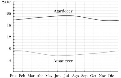 Los alumnos parecen sorprenderse con estas gráficas (por ejemplo, algunos esperan que las curvas tengan aspecto triangular, en lugar de suave y redondeado), lo que las convierte en actividades instructivas a nivel de secundaria o bachillerato. Para el estudio de un caso pedagógico, véase: A. Friedlander y T. Resnick, «Sunrise, sunset», Montana Mathematics Enthusiast, vol. 3, n.º 2 (2006), pp. 249-255, disponible en http://www.math.umt.edu/tmme/vol3no2/TMMEvol3no2_Israel_pp249_255.pdf.