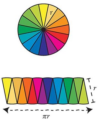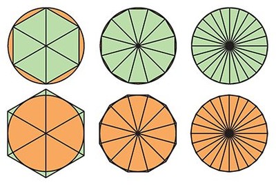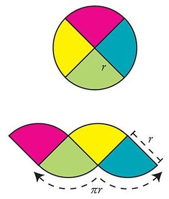 Mamikon Mnatsakanian, en Caltech (Instituto Tecnológico de California), ha producido una serie de animaciones que ilustran el espíritu de Arquímedes y el poder de cortar. Mi favorito es http://www.its.caltech.edu/~mamikon/Sphere.html, que retrata una hermosa relación entre los volúmenes de una esfera, cierto doble cono y un cilindro, cuya altura y radio encajan con los de la esfera. También muestra lo mismo de manera más física, drenando un volumen de líquido imaginario del cilindro y echándolo en las otras dos formas; véase http://www.its.caltech.edu/~mamikon/SphereWater.html.