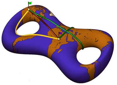 La naturaleza puede resolver ciertos problemas de camino-más-corto mediante procesos descentralizados similares a la computación analógica. Para ondas químicas que resuelven laberintos, véase O. Steinbock, A. Toth y K. Showalter, «Navigating complex labyrinths: Optimal paths from chemical waves», Science, vol. 267 (1995), p. 868. Para no ser menos, los mohos mucilaginosos también pueden resolverlos: T. Nakagaki, H. Yamada y A. Toth, «Maze-solving by an amoeboid organism», Nature, vol. 407 (200), p. 470. Este organismo viscoso puede trazar redes tan eficientes como las del sistema ferroviario de Tokio: A. Tero et ál., «Rules for biologically inspired adaptive network design», Science, vol. 327 (2010), p. 439.