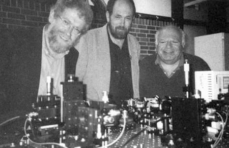 Al otro lado del Atlántico, algunos años después, Alain Aspect trabajaba con frenesí en su laboratorio en el sótano del Centro de Investigaciones Ópticas de la Universidad de París en Orsay. Se afanaba en poner a punto un ingenioso experimento que probaría que dos fotones, en lados opuestos de su laboratorio, podrían, instantáneamente, afectar el uno al otro. Aspect llegó a estas ideas a partir del mismo abstruso artículo de John Bell.