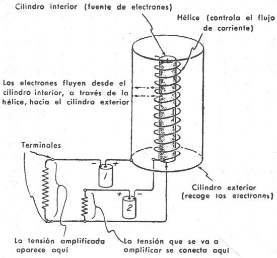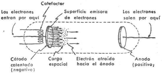 La parte esencial es una válvula electrónica de dos elementos, que solamente deja pasar corriente en un sentido (capítulo 3).