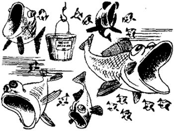 De una manera totalmente distinta se comporta la familia de los que alumbran pequeñuelos fuertes e independientes. A ellos pueden bastarles unos cuidados muy limitados por parte de los padres y entonces la familia adquirirá las formas más inesperadas. Así, a principios de la primavera aparece un banco de luciopercas machos en el desovadero, donde ellos mismos nacieron en tiempos pasados. Luego el banco se desintegra. Cada lucioperca elige un lugarcito en el fondo, lo limpia y construye el nido con filamentos de algas verdes. No se asombre, pues no todos los peces desovan simplemente hay muchos que construyen nidos complicados.