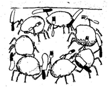 Más trágicas son aún las costumbres nupciales de una de las especies de los poliquetos. En ellos no se produce el apareamiento verdaderamente dicho. El macho deposita el esperma en la boca de la hembra y después, la desgarra por partes, gracias a lo cual los espermatozoides tienen la posibilidad de fecundar los huevos que se desprendieron de los pedazos del cuerpo.