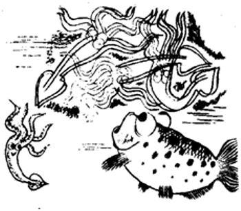 Ese mismo principio lo copió de los tiburones la rana marina o pescadora, descubierta hace poco en el sudeste de Asia. De todos los anfibios, sólo ella se adaptó a la vida en el agua de mar. Verdad es que estas ranas continúan depositando las huevas en agua dulce pero los renacuajos, después de crecer un poco, se van al mar, donde se alimentan con centollas. Igual que los tiburones, ellas conservan en la sangre la urea, pero esto lo hacen por su propia voluntad: antes de pasar al agua de mar se proveen de urea; cuando van al agua dulce, se libran de sus sobrantes. Por eso, en cualquier parte que vivan, estas ranas, igual que los demás parientes suyos, no tienen necesidad de beber agua.