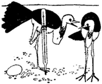 Aquí, después de construir su nido, el lucioperca macho espera a la hembra, que pondrá los huevos, y luego como si no hubiera pasado nada, se va a pasear por el mundo. El macho se queda para proteger los huevos y cuando de ellos salgan los alevinos, también abandonará el nido, y si por el camino no se alimenta con sus hijos, será porque aún son muy pequeños y no merece la pena meterse con semejante morralla. Entre los peces es muy frecuente que el hogareño resulte ser el macho. Tales familias tan originales se encuentran también entre las aves. La minúscula hembra del chorlito sólo se molesta en poner los huevos; empollarlos y atender a las crías se encomienda del padre.