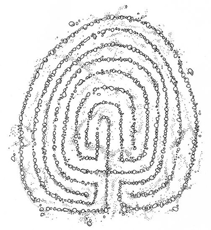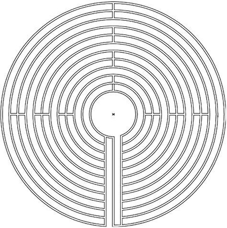 Los laberintos verdaderos, los de una sola vía, deben contrarrestar su falta de libertad con el diseño armónico de su recorrido. Para trascender la limitación impuesta por la existencia de una única trayectoria, el trazado debe convertirse en un bello sistema eurítmico, equilibrando sentidos de giro y patrones de movimiento que compongan una danza interior hasta llegar al sagrado centro. Nada de esto ocurre en este ejemplo. En este diseño resulta imposible encontrar medida o proporción. No hay ley armónica que intuir, ni patrón que sospechar. Es el laberinto de la sumisión a lo insensato y lo mediocre, que produce una anulación absoluta del ser.