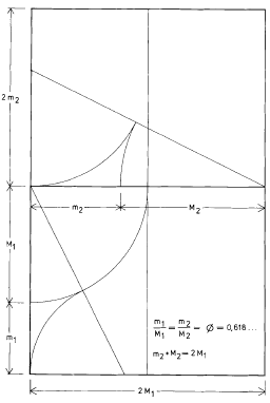 Esta facultad se demuestra también en las propiedades geométricas de la sección áurea. Si, siguiendo el esquema inicial de «la división de una recta en media y extrema razón», trazamos el correspondiente rectángulo áureo, tendremos:
