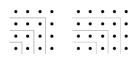 El cuadrado es especialmente interesante: el número de oro se eleva al cuadrado sumándole la unidad: