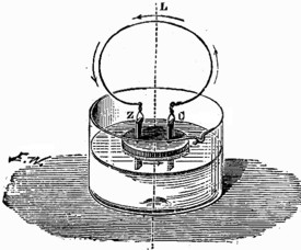 Hemos dicho que las máquinas electro-magnéticas pueden usarse indistintamente como generadores de electricidad y Como motores, y hemos comprobado nuestro aserto con varios ejemplos. Si nos fijamos en el carácter de estos motores, veremos que la fuerza que los pone en acción es la que les transmite la corriente eléctrica que hasta ellos llega. Ahora bien, esta corriente eléctrica puede dimanar o de, un generador análogo, y éste es el caso citado, o de cualquier otra fuente de electricidad, tales como la pila voltaica, la termo eléctrica, etc. La cuestión estriba, en que la intensidad de la corriente sea proporcional al efecto que se ha de producir; en cuanto a su origen, es indiferente para el caso. Es cierto que, para llegar a poner en movimiento una máquina de Gramme, por ejemplo, utilizando la corriente de la pila, sería necesario emplear un número de elementos tan considerable, que el problema, económicamente considerado, resultaría irrisorio; pero el principio no es por eso menos verdadero. Por lo demás, la primera idea que guió a físicos y mecánicos en la resolución de este problema, era independiente por completo de la fuente de electricidad que les había de servir como fuerza motriz, y con tal idea se construyeron los primeros motores eléctricos, de los cuales vamos a decir ahora algunas palabras, antes de cerrar este capítulo.