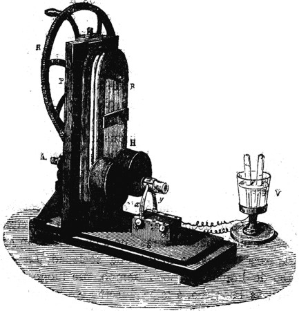 Dicen que el primer ensayo de máquina electromotriz se debe a Salvator del Negro, de Padua, que construyó una, en 1831, en la cual se hacía oscilar un imán permanente entre los polos de un electro-imán de herradura. Un alemán construyó después una máquina de rotación directa, y el ruso Jacobi ensayó sobre el Neva, en 1839, una máquina electromotriz que ponía en movimiento una lancha. Los resultados fueron poco satisfactorios. Lo mismo diremos de algunas otras máquinas inventadas más tarde, tales como la de Bourbouze y la de Froment, que si bien han podido ser aplicadas, especialmente la última, a la ejecución de ciertos trabajos delicados, no han respondido por completo a las necesidades de la cuestión. Estas dos últimas pertenecen cada una a un tipo distinto: la prima es de las llamadas oscilantes y la segunda de las rotatorias.