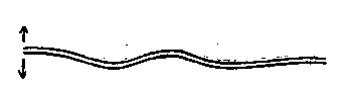 El punto de partida que lleva a este resultado es un fenómeno clásico que nada tiene que ver con la física moderna. Tomemos en las manos uno de los extremos de un tubo de goma largo y flexible o una espiral elástica muy larga y démosle un rápido movimiento rítmico de sube y baja, haciendo que dicho extremo entre en oscilación. Entonces, como vimos en otros casos, se crea una onda que progresa a lo largo del tubo con cierta velocidad. (Fig. 80). Si imaginamos un tubo indefinidamente largo, iniciadas las ondas parciales, éstas continuarán su viaje sin fin, sin interferencia alguna.