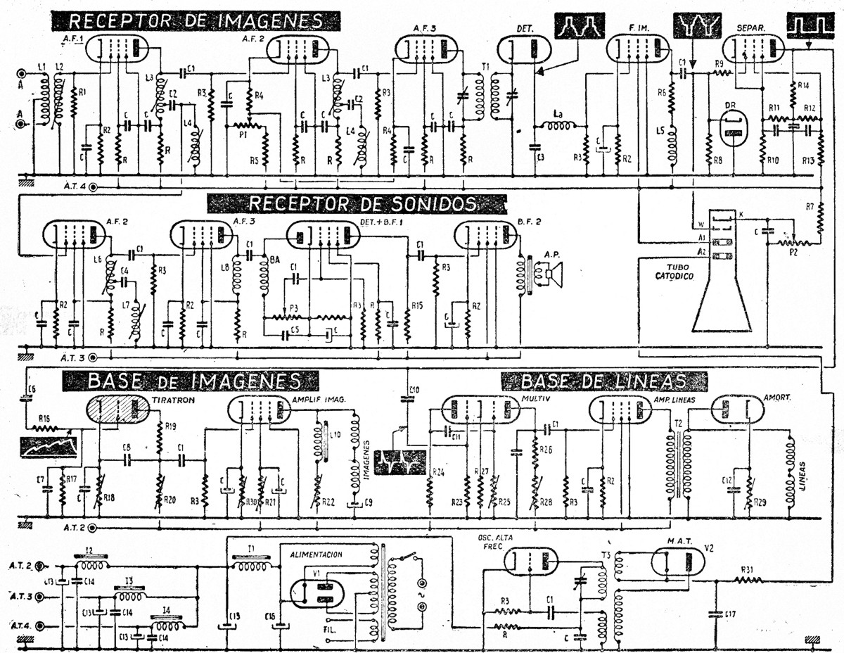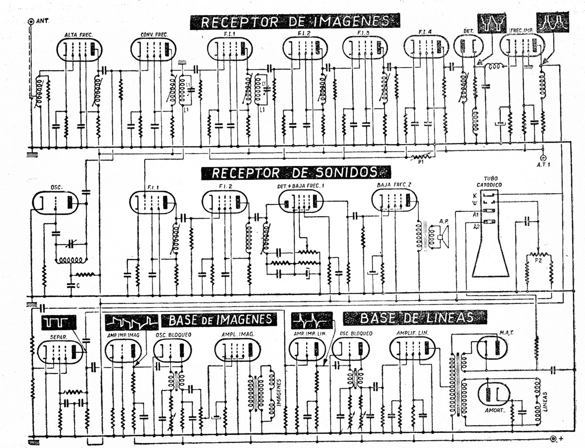 Rad. — No quiero defraudar su entusiasmo, pero para serle sincero le diré que lo que aprendió durante nuestras conversaciones no alcanza seguramente para hacer de usted un ingeniero de laboratorio. No he tratado de explicarle todos los circuitos existentes en televisión, ni enseñarle cómo debe realizar un televisor. Me esforcé, en cambio, para hacerle — comprender la misión y funcionamiento de los diversos elementos constitutivos. Y con esta base, ningún esquema, por complejo que parezca a primera vista, debe inspirarle temor.