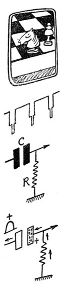 Cur. — Si lo prefiere así... La brillantez, entonces, de cada elemento (por este término entiendo una superficie elemental, suficientemente pequeña para que el ojo no puedas distinguir ningún detalle dentro de sus límites) se traduce en una tensión que es proporcional a ella. Por lo tanto, una superficie blanca muy iluminada producirá un máximo de tensión, mientras que una zona negra dará una tensión nula.