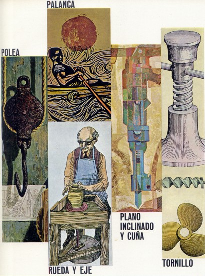 Hoy tenemos máquinas que pueden hacer mucho más. No obstante, las partes móviles de todo ingenio mecánico pueden reducirse todavía a las cinco «máquinas simples» conocidas de los antiguos griegos: