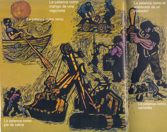 Las formas de la palanca son extraordinariamente numerosas, pues las partes movibles de cualquier ingenio mecánico pueden reducirse a palancas. Arquímedes no era ni modesto ni ligero cuando afirmó: " Dadme un fulcro en el que pueda apoyarme y moveré la Tierra ".