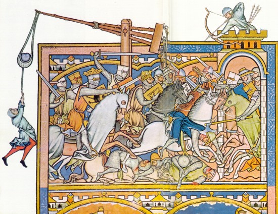 Este relato del siglo III es una de las descripciones más antiguas y más claras de la diferencia entre una polea fija (abajo, izquierda) y una polea movible (abajo, centro). La polea fija no proporciona ayuda alguna al que tira.