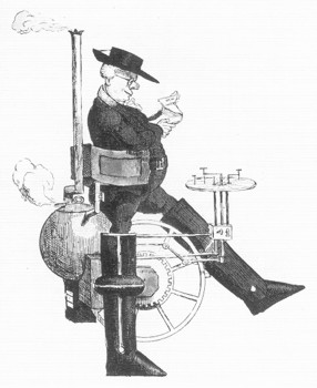 EL PRINCIPIO DE UNA BATALLA PERDIDA. Entre los primeros enemigos de la mecanización había un grupo de ingleses en el siglo XIX, llamados Luciditos, tan enfurecidos contra las máquinas textiles que les dejaban sin empleo, que con riesgo de la pena capital destrozaban y quemaban las fábricas. En este dibujo, un dirigente Luddito, disfrazado de mujer, arenga o sus seguidores. Los disturbios Ludditos estallaron en 1840, cuando los artesanos se volvían dóciles vigilantes de las odiadas máquinas.