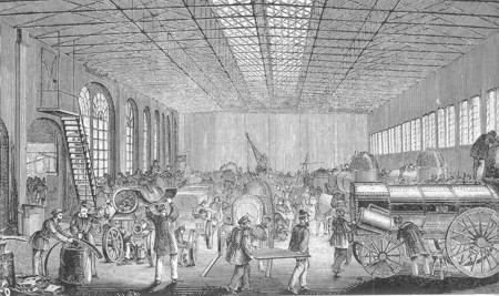 Desde el principio fue una batalla perdida. Las máquinas resultaban ser rápidas, baratas en su manejo, y muy buenas en su trabajo. Como un auténtico torrente, la gente empezó a producir en Inglaterra y en Europa nuevos inventos que servían para cortar, perforar, taladrar, girar, pulimentar, rajar, esquilar, laminar y estampar. Los seres humanos no podían competir. Cuando entró en funcionamiento una fábrica en Portsmouth en 1808, construida por sir Samuel Bentham y sir Marc Isambard Brunel para fabricar poleas para la Marina británica, su equipo de 144 diferentes máquinas de precisión movidas a vapor producía los poleas a razón de 130.000 al año.