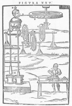 El Renacimiento desencadenó las mentes humanas, y el hombre empezó a sentir la importancia futura de la máquina. Leonardo da Vinci, visualizando las bolsas de dinero que su proyectada máquina para pulir puntas de aguja podría dejarle, escribió en su libro de notas:
