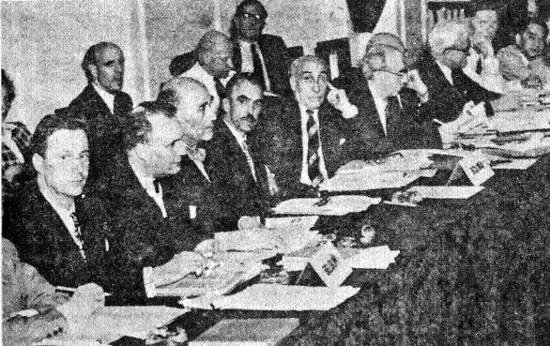 Conferencia sobre el estaño. Roma, octubre de 1951. En el centros Delegación de Bolivia, Mauricio Hochschild, representante de la empresa privada; Roberto Querejazu Calvo, delegado del gobierno; Carlos Víctor Aramayo, representante de la empresa privada.