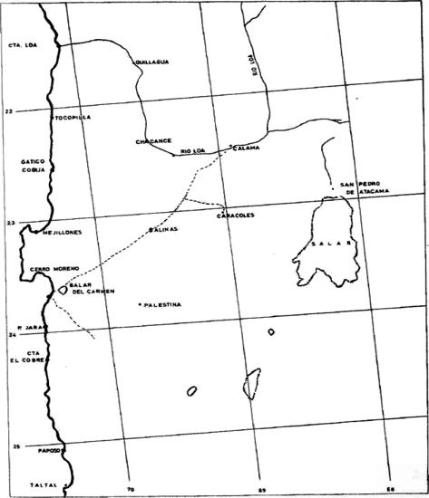 Propiamente en la costa, las dos poblaciones indígenas más importantes anteriores al periodo colonial y que se mantuvieron en el curso de éste fueron, como es sabido, Cobija y Paposo [1]. (Otros puntos de la costa han sido también habitados por los precolombinos, según los hallazgos arqueológicos, pero han estado ya deshabitados antes de la llegada de los españoles o poco después).