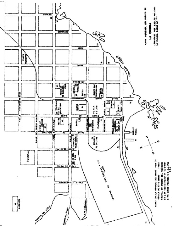 La habilitación de la caleta de La Chimba ocurre en 1867 al empezarse la construcción del muelle. Con ese primer trabajo que exigió el concurso de un grupo de operarios y con la instalación de la familia de López, Antofagasta está ya no sólo habitada como en 18 66, sino poblada, por escaso que haya sido ese primer aporte poblacional. Rogamos volver al capítulo 9 en el que se dan diversas noticias sobre la situación en 1867.§3