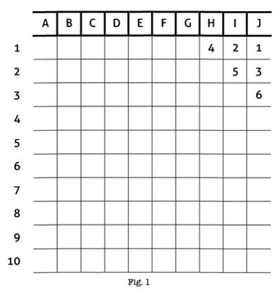 "Como ustedes ven en este ejemplo", siguió Pablo, "no me fue posible evitar que en el tablero quedara dibujada una línea de fractura. Es decir, si ustedes miran acá (y marcó donde está la 'flecha' en la figura 1), hay una línea completa que divide el tablero en dos partes. Eso es lo que llamo una línea de fractura. Lo que ustedes tienen que hacer es distribuir las 18 piezas de dominó ocupando todo el tablero, de manera tal que no quede ninguna línea de fractura dibujada."
