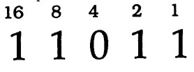 La solución de este problema puede expresarse muy simplemente en el sistema binario de la aritmética. Es un método para expresar números enteros utilizando solamente los dígitos 1 y 0. Recientemente se ha convertido en un sistema importante porque la mayoría de las computadoras electrónicas gigantes operan sobre una base binaria. Así es como se escribiría el número 27, por ejemplo, si usamos el sistema binario: